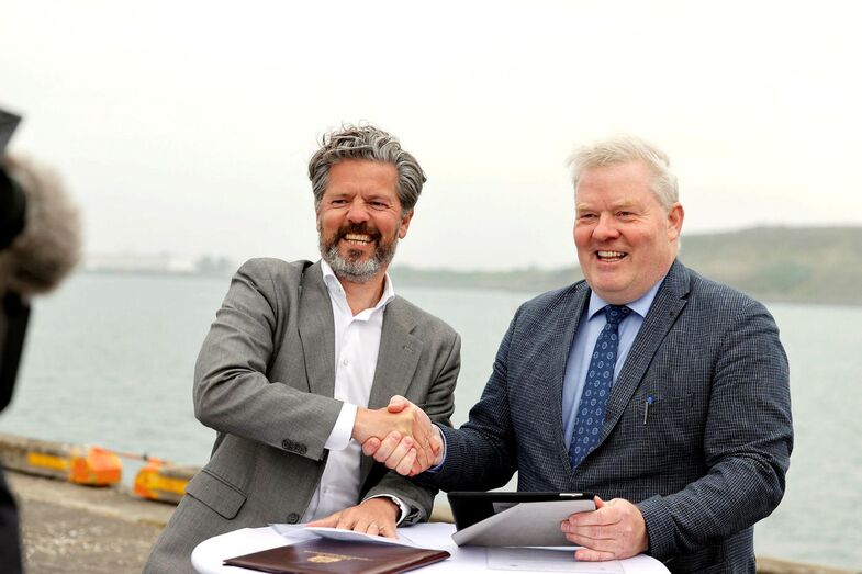 Þeir voru kampakátir 6. júlí á hafnarbakka við undirritun yfirlýsingar um Sundabraut: Dagur B. Eggertsson borgarstjóri og Sigurður Ingi Jóhannsson, samgöngu- og sveitarstjórnarráðherra (mynd: mbl.is/Eggert Jóhannesson).