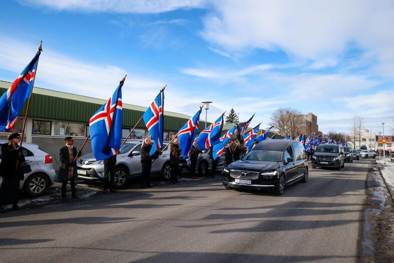 Félagar í Sambandi ungra Sjálfstæðismanna (SUS) stóðu heiðursvörð við Eiríksgötuna þegar líkfylgdin fór frá Hallgrimskirkju að Fossvogskirkjugarði. (mynd: mbl.isI/Karítas).Þegar Davíð Oddsson er kvaddur hinstu kveðju vakna margar minningar. Við vorum í áratugi samherjar í stjórnmálabaráttu undir merkjum Sjálfstæðisflokksins og bar þar aldrei skugga á samstöðu um þau málefni sem um var fjallað.